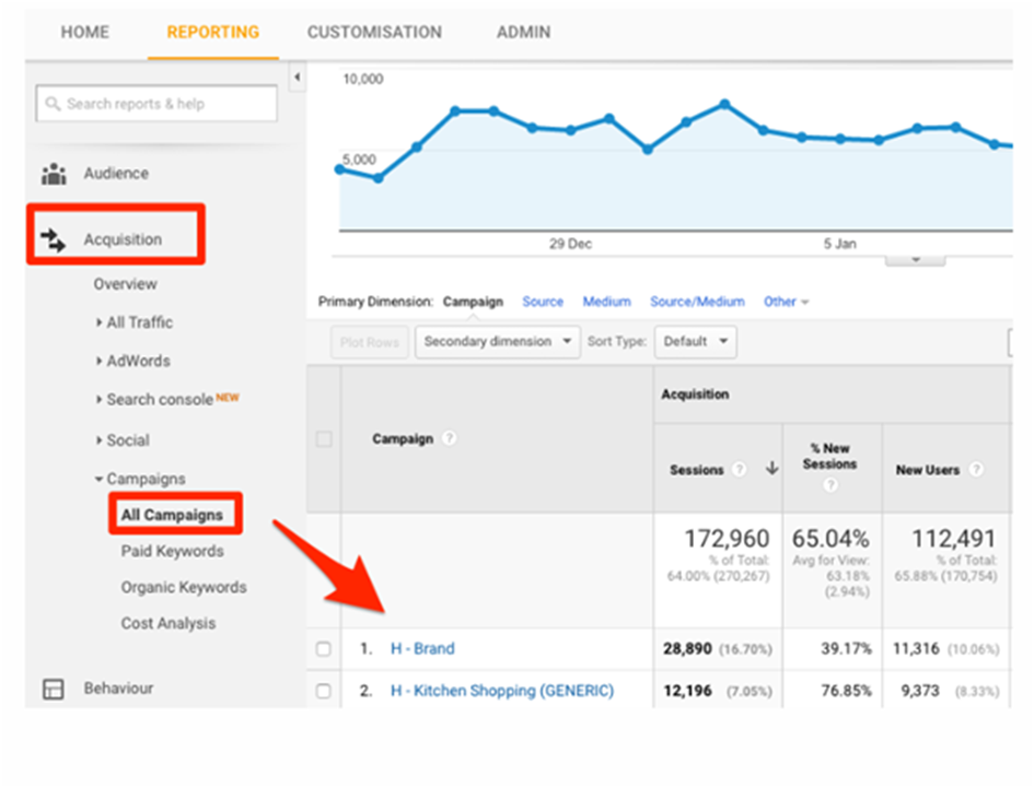 After starting to tag URLs across your online marketing campaigns, all you’ll need to know is where to navigate in Analytics. This would help to view information the tags have been delivering. The information you need can be found in Standard Reports > Traffic Sources > Sources> Campaigns.
